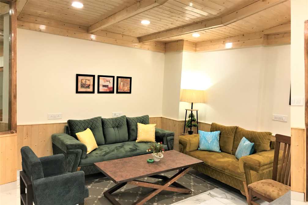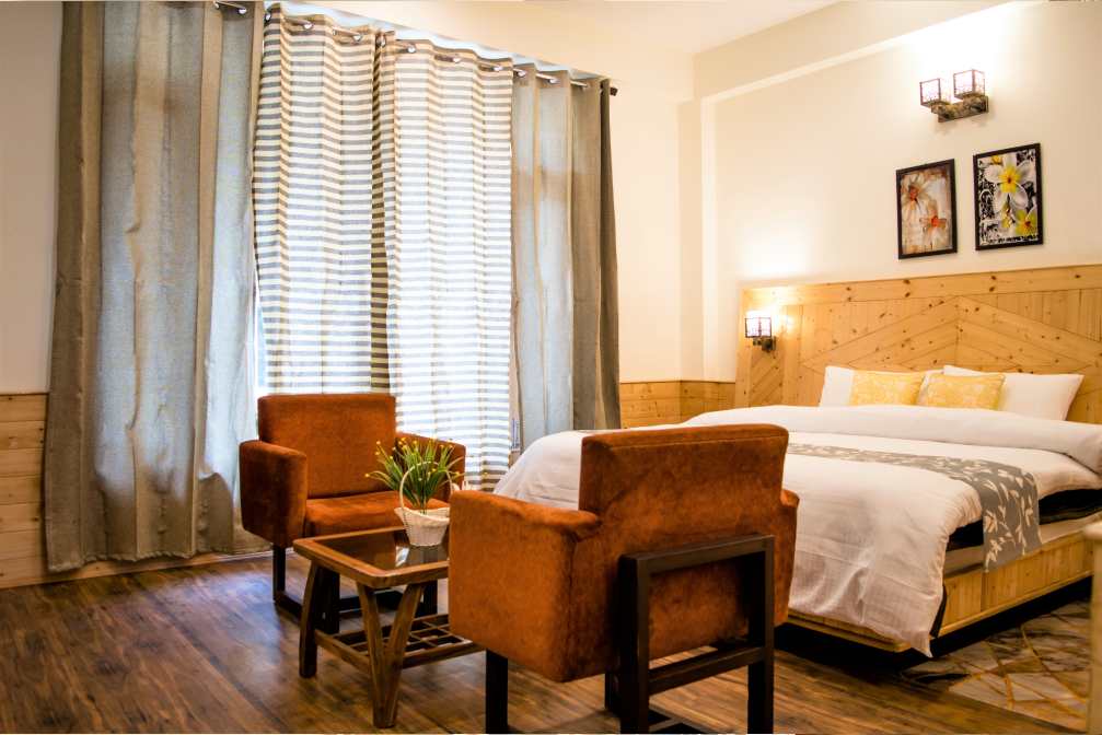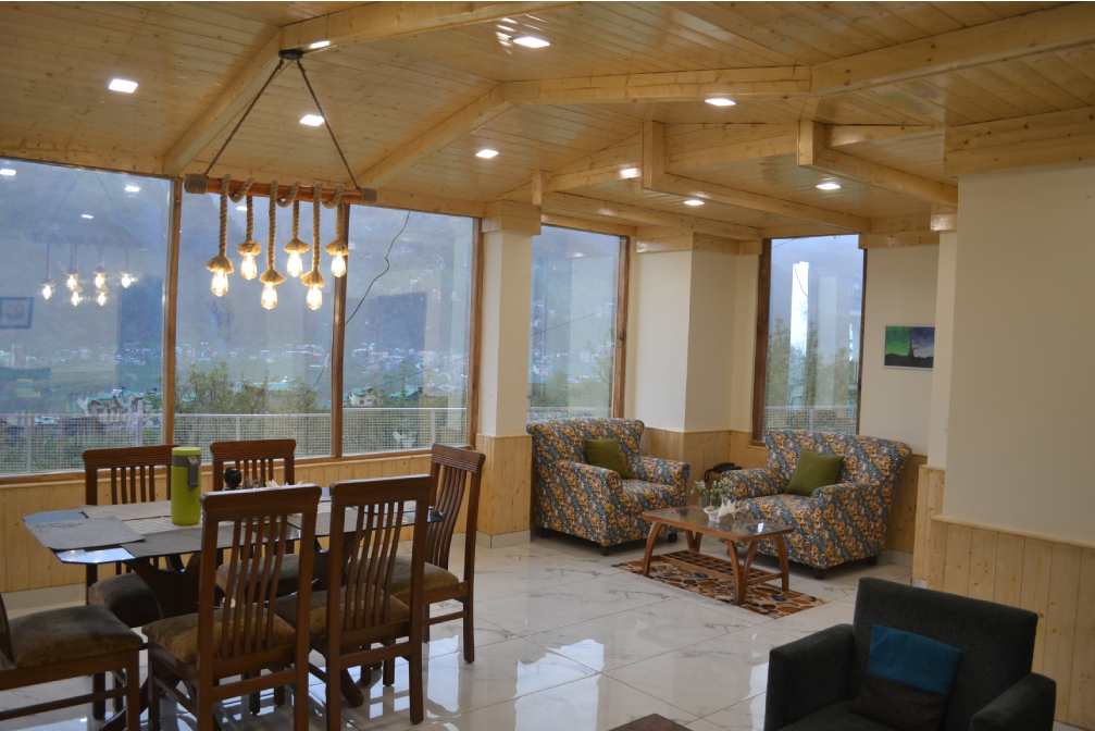 Expansive Room with Personal Balcony and Sofa Seating. Stunning View of Mountains & Kullu Manali Valley. 42” Smart Tv’s, 10” Pocket spring mattresses, Tea Coffee Station, Hair Dryers and Shaving/Makeup Mirrors in the washrooms, Fans, Wardrobe, Full length Mirrors.