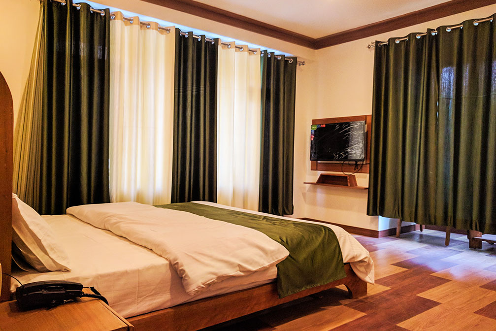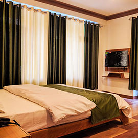 Well laid out, spacious and comfortable rooms. Double bed and sitting area. Basic facilities like Fans, TV, Geysers, Intercom, etc.